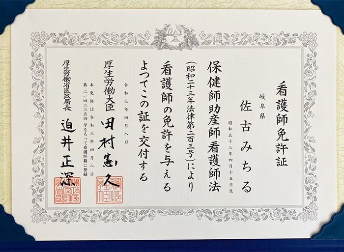 29歳で時間と気持ちに余裕が持てるようになり、夢に向かって一歩踏みだすことができました。その夢は16歳の時に心身共に癒やしてくれた看護師さん。看護師になるために病院で看護助手をしながら、准看護学校に入学しました。家事、仕事、勉強と大変でしたが夢に向かい懸命に働き、懸命に学び、そして准看護師免許を取得することができました。